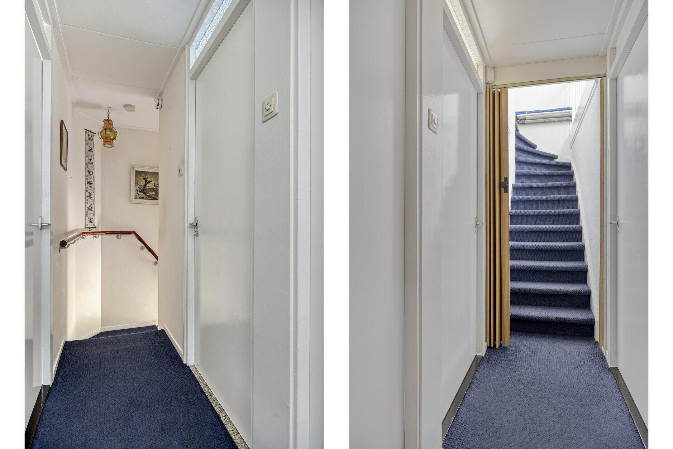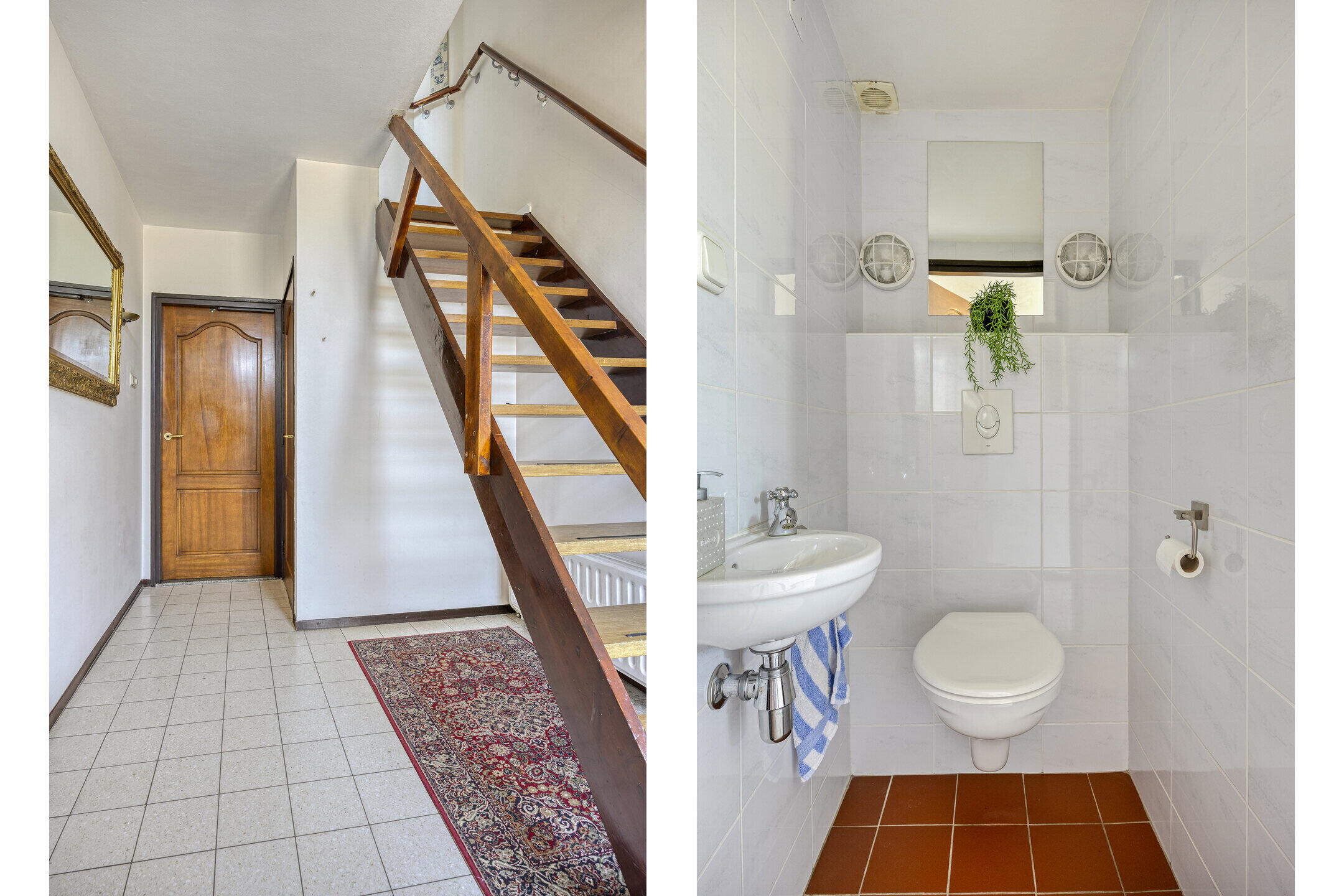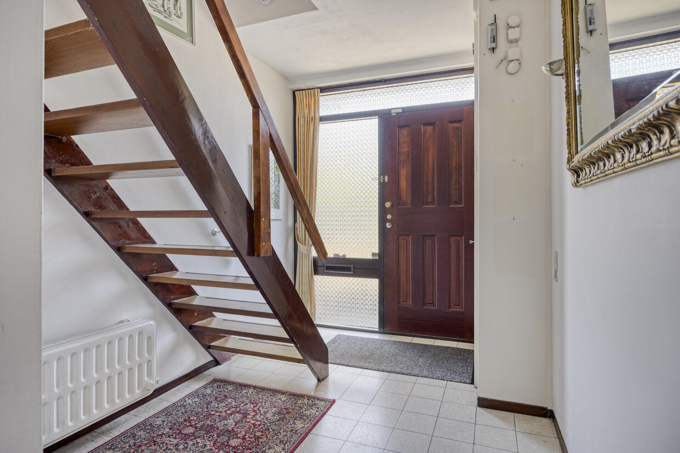 Je betreedt de woning via een ruime hal die direct een fijne eerste indruk geeft. Hier vind je een apart toilet en de vaste trap naar de eerste verdieping.